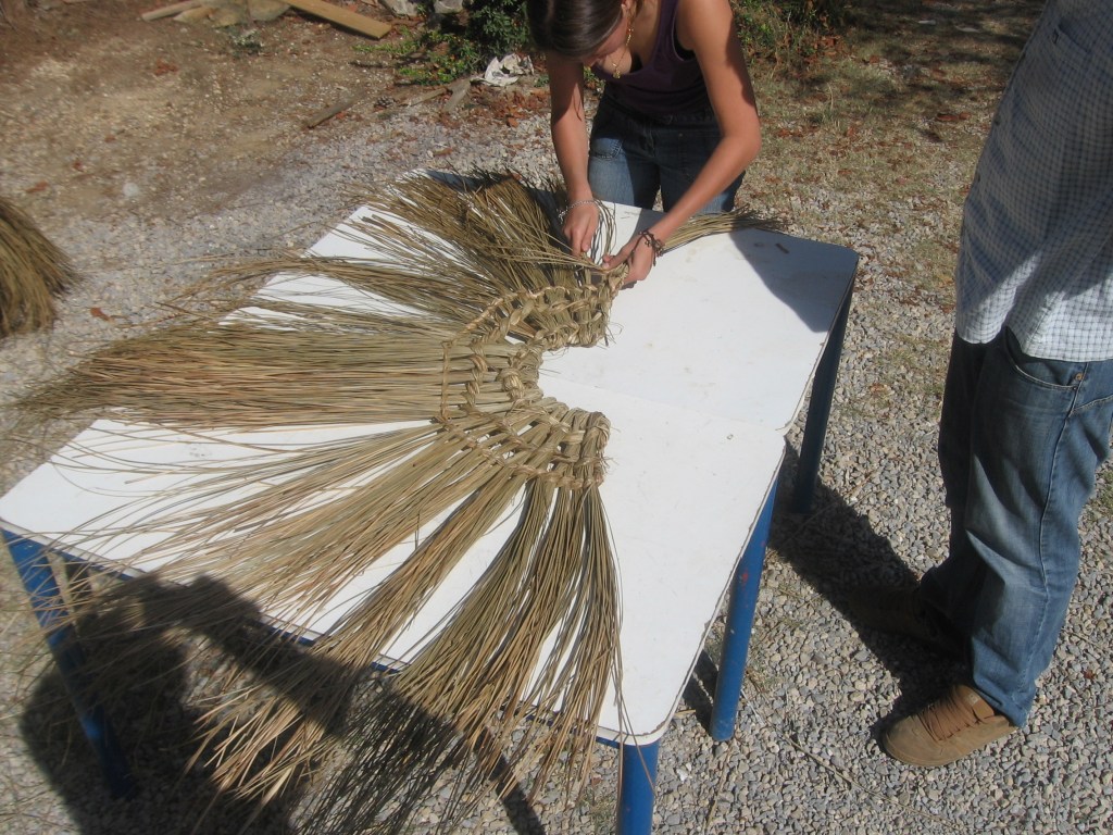 Déroulé : Les plus jeunes se contenteront de cordelettes, de bracelets et autres menus objets, tandis que les plus grands s’appliqueront à confectionner des étuis de couteau, des chapeaux, des gibecières et mêmes des capes en utilisant des techniques proches et celles du tissage cordé. C’est le diamètre des fibres et l’absence de métier qui distingue la sparterie du tissage.