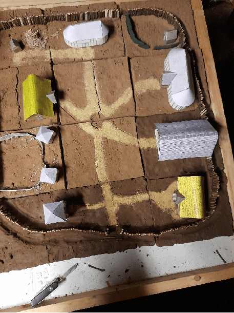 Maquette de maison néolithique en carton.et allumettes