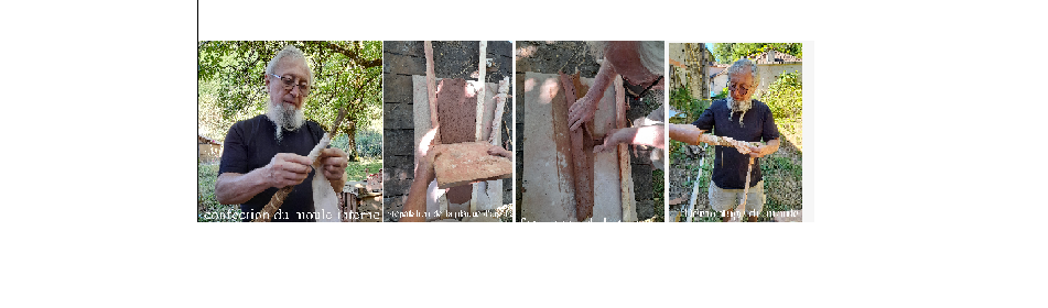 Déroulé; Soit l’association fourni les moules internes, soit elle ne met à disposition que les matériaux (paille et tissu). Les participants étalent de l’argile dans des gabarits puis façonnent la plaque d’argile autour du moule la lissent et prévoient les petites anses avant de modeler l’embouchure autour d’un gabarit.