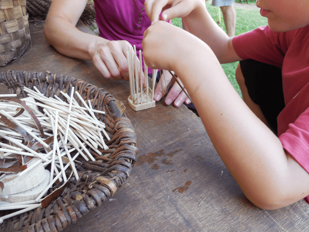 Objectif : Faire connaitre quelques gestes élémentaires de la Vannerie et montrer son utilité dans tous les moments de la vie au Moyen-âge.