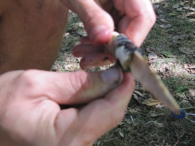 L’intérêt étant de montrer quelles colles (bétuline cire d’abeille+ charbon de bois ou ocre + résine de pin) , quels liens ont peut utiliser : (tendons , boyaux , fibres végétales etc..)